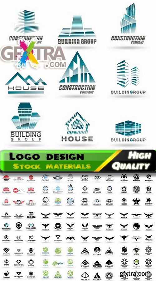 Logo design for business with theme - construction, building group, house, future technologies, modern and luxury house, classic car, auto service, sport car, crown, real estate, place, towers, lotos, flowers, globe, planet earth, sail boats, yachting, rocket, shield, autohouse, eyes, vision, new star, photography, camera, eagle, brilliant, diamond,abstract spiral, pyramid, hitech, scentific research corporation in vector Set from stock